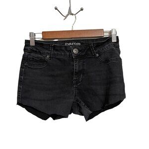 Maurices Women's Black Wash Stretch Whiskered Cut Off Jean Shorts Size Small