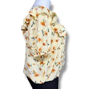 Maurices Womens Blouse Shirt Top Bubble Hem Ruffle Floral Yellow Orange 2X