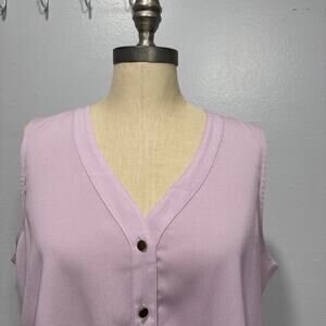 Maurices Women’s Blouse Sleeveless Button Up Tank Top Work Pinkish Lavender Sz L