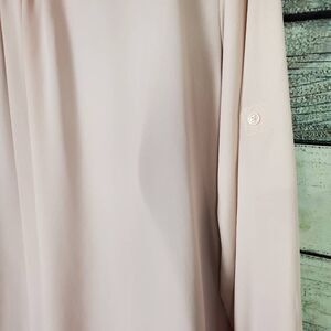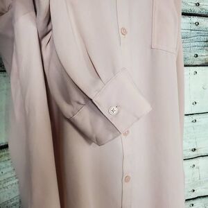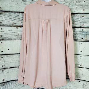Maurices collared blouse in a soft blush pink color. Long sleeve with button cuffs, two chest pockets, and full button front. 100% polyester, lightweight and versatile for work or casual wear.