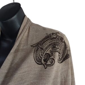 Maurices Women's Brown Embroidered Open Front Sweater Cardigan Size L