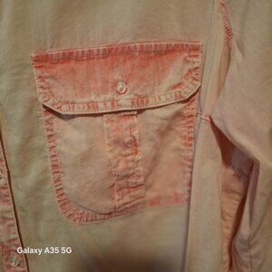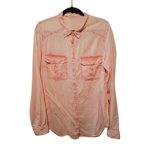 Maurices Womens Button-Down Distressed Faded Lightweight Peach Shirt Size 1 Lg