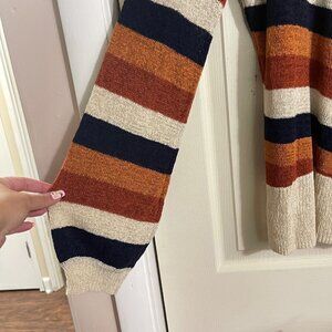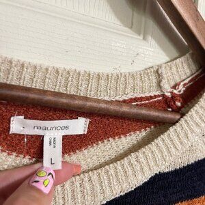 Maurices Womens Cream Orange Blue Striped Balloon Sleeve Fall Sweater Large