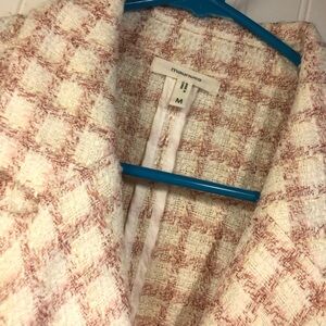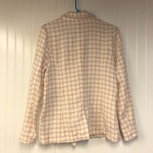Maurices Women's Cream and Pink Plaid Jacket Button Close Medium