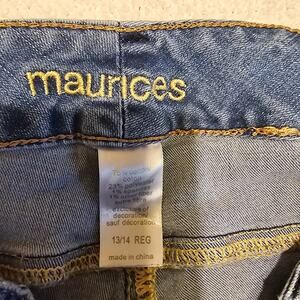 Maurices Women’s Distressed Mid-Rise Jeans Blue Stretch Mid Rise Size 13/14