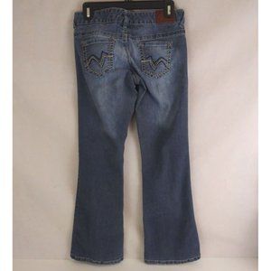 Maurices Women's Distressed Whiskered Embroidered Bootcut Jeans Size 3/4 Short
