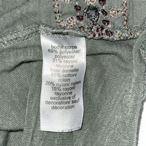 Maurices Womens Embroidered Short Sleeve Peplum Top Size 1 Green Lace Accents