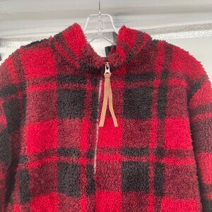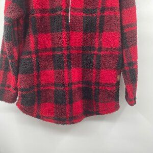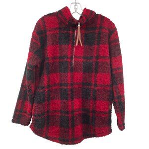 Maurices Womens Fleece Pullover Top 1/4 Zip Red/Black Check Size Medium