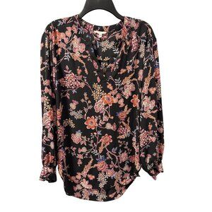 Maurices Womens Floral Blouse Sz Medium 3/4 Sleeve Black & Multicolor V-Neck