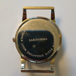 Needs a new battery and band. There are a few small nicks on the case. There are scratches on the crystal and case. It's a casual preppy style. Please view the photos. Thank you!