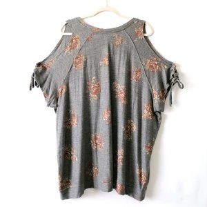 Maurices Womens Gray Cold Shoulder Round Neck Floral Blouse Top Size 3X