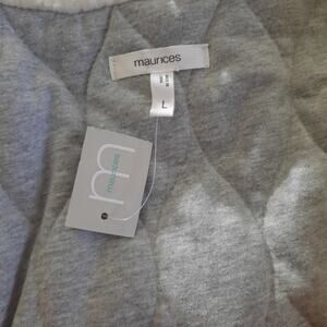 Maurices Womens Gray Quilted Sherpa Hooded Vest Size L NWT