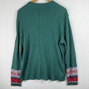 Maurices Womens Green Long Sleeve Knit Mock Neck Tee Size XXL Fair Isle Cuff