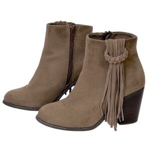 Maurice’s Women's Hailey Suede Fringe Ankle Stacked Heel Boots Size-6 EUC