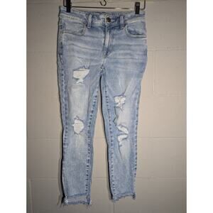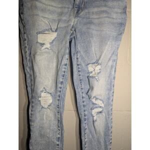 Maurice's High Rise Distressed Jegging style Jean med wash. Rough edges on the bottom. Size 4 short. GUC.