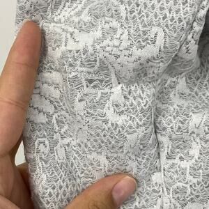 White Lace Overlay over Gray Sweater