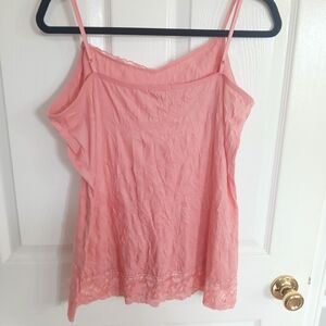 Maurices Womens Lace Trim Cami Tank Top Size L Pink Stretch Romantic Preppy Y2K