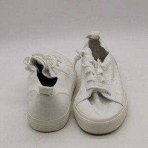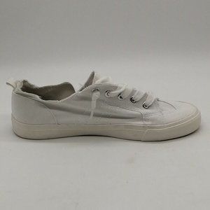 Maurices Womens Lace Up Canvas Sneakers White Round Toe Fringed Edging 9M