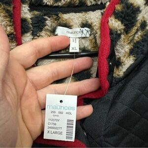 Maurice’s Women’s Leopard Print Snap Button Fleece Pullover Size XL NWT