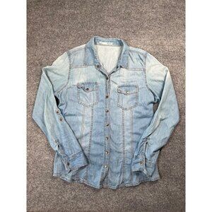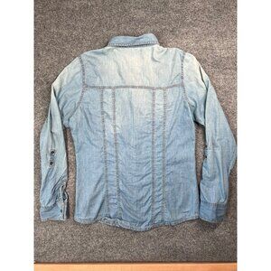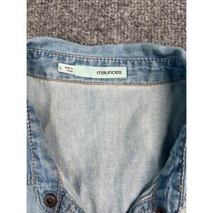 Maurices Women's Light Wash Denim snap Shirt Pockets L cowboycore rodeo cowgirl