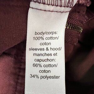 Maurices Womens Long Jean Jacket Wine Full Zip Knit Hood Pockets Collar M