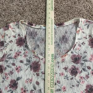 Maurice’s Women’s Long Sleeve Top Sheer Floral Lace Y2K Feminine V Neck Large