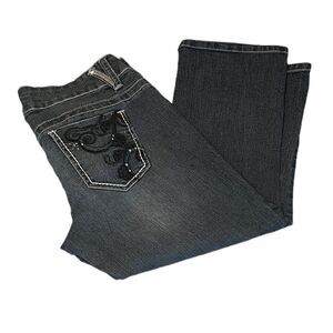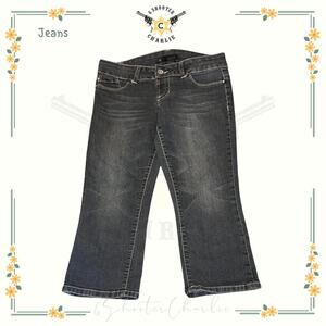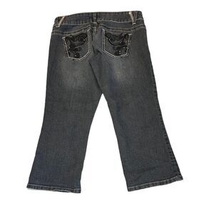 Maurices Womens Medium Capri Jean Shorts Denim Embroidery Pockets Super Soft
