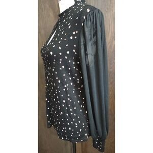 Maurices Womens Medium Long Sheer Sleeve Keyhole High Neck Top Black stretch