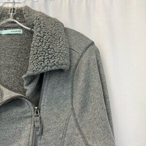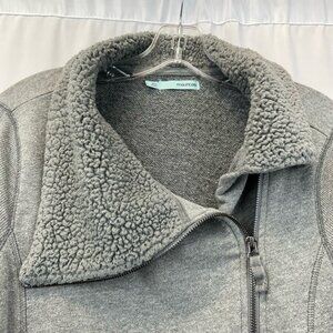 Maurices Womens Moto Jacket Gray Heathered Zip Pockets Asymmetric Faux Fur L