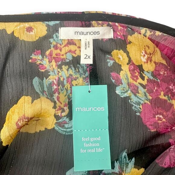 Maurices Women's NWT Plus Size Floral Ruffle Hem Kimono Size 2X Black Multi