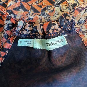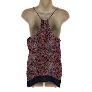 Maurices Womens Navy Red Print Beaded Strappy Sharkbite Hem Lined Tank Size S