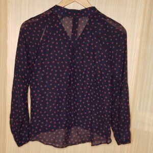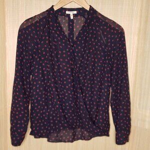 Maurices Womens Navy Red Semi Sheer Faux Wrap Floral Blouse Small