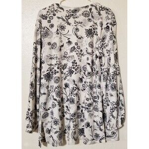Maurices Womens Open Cardigan Cream Black Floral Large Lace Long Sleeve