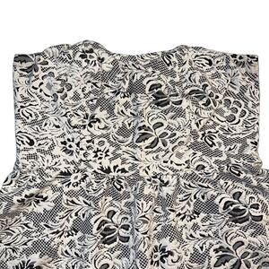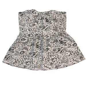 Presenting an ultimate party ensemble, a strapless peplum top. This black and cream women's top is adorned with a captivating floral pattern. The shirt is designed to gather at the back, cascading to the hem, ensuring you're the star of any event. A perfect blend of style and elegance.