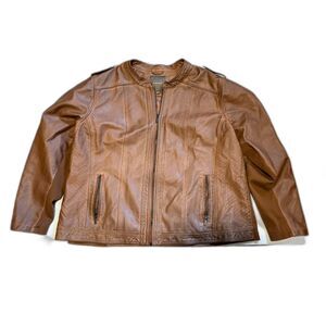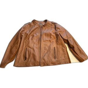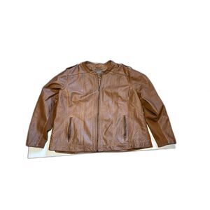 Maurices Women’s Plus Size 3X Faux Leather Moto Jacket Brown Zip Front Pockets