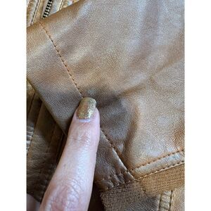 This Maurices women’s plus size 3X moto jacket in warm brown/cognac faux leather is the perfect mix of edgy and versatile. Designed with a zip front, quilted details, and zippered pockets, it brings classic biker-inspired style to everyday wear. The stretch panels on the sleeves add comfort and ease of movement.