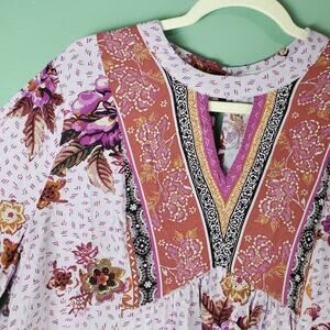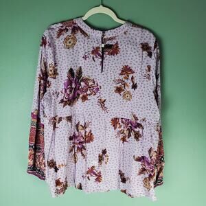 Maurices Womens Plus Size Purple Floral Long Sleeve Boho Blouse Top Size 1X