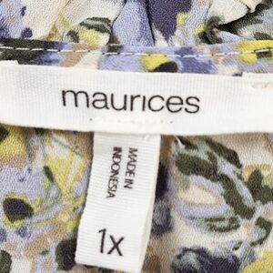 Women's Plus Size Button Down Ruffle Neck Blouse from Maurices in Yellow Flora.