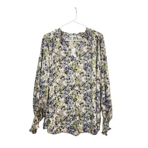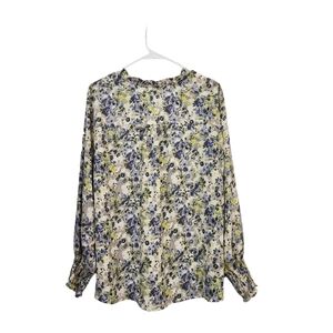 Maurices Women's Plus Size Yellow Floral Button Down Ruffle Neck Blouse - 1X