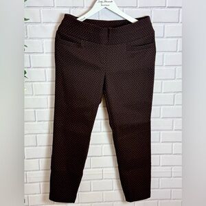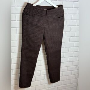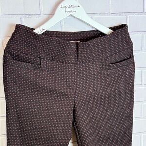 Chic and comfortable, these Maurices ankle-length pants feature a subtle geometric print in black and burgundy tones.