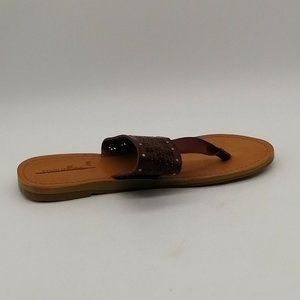 Maurices Womens Pryia Thong Sandal Brown Perforated Studs Flat Heel 7M