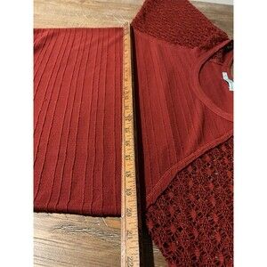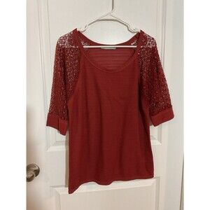 Maurices Women's Rust Red Knit Top Lace Sleeve Scoop Neck 3/4 Sleeve Large L