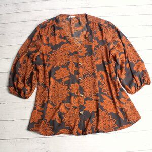 Maurices Women's Sheer Chiffon Tunic Top Size XXL 3/4 Sleeves Floral Blouse