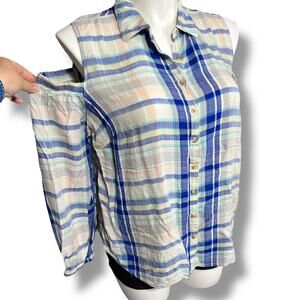 Shirt Button Down Collared Cold Shoulder Long Sleeve Plaid Maurices