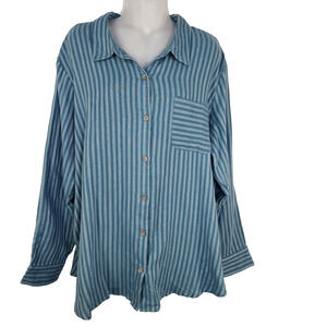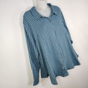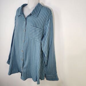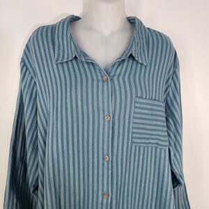 Maurice’s Women’s Shirt XL Flannel Button Front Teal Striped Long Sleeve Cotton