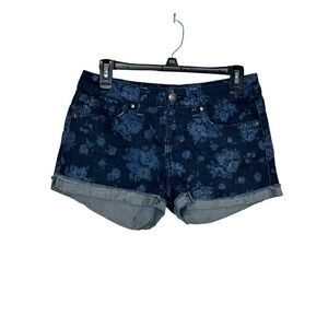 Maurices Womens Shorts Floral Stretch Denim Cotton Blend Cuff Raw Hem Blue 5/6
