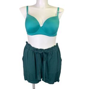 Maurices Womens Shorts Paperbag Waist Relaxed Fit Lightweight Forest Green XL