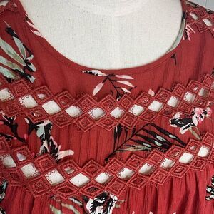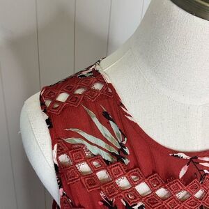 Maurices Womens Size Large Pullover Top Red Floral Sleeveless Diamond Cutouts