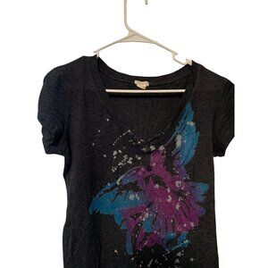 Maurices Womens Size Large Short Sleeve VNeck Pullover Tshirt Tee Graphic Butterfly Purple Blue