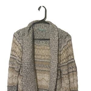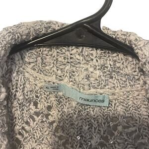 Maurices Womens Size XL Knit Cream Gray Sequin Fairy Open Front Cardigan Sweater